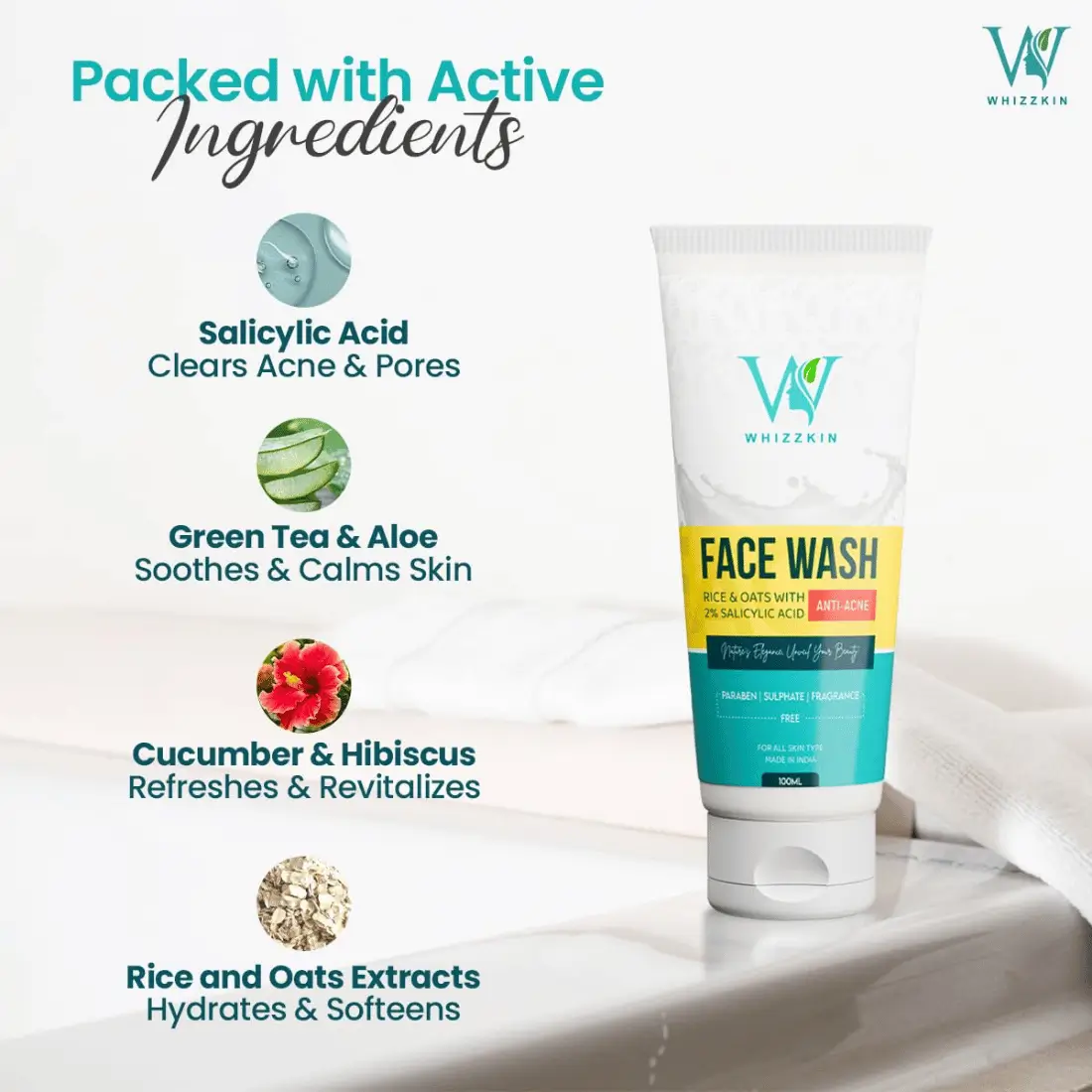 Product Benefits Designed carefully to combat active acne, the sulfate-free facewash helps in Deep pore cleansing and Moisturizing . Cleansing out the impurities without over-drying the skin, which improves skin hydration packed with Rice and oats which act as a dehydrated skin savior!